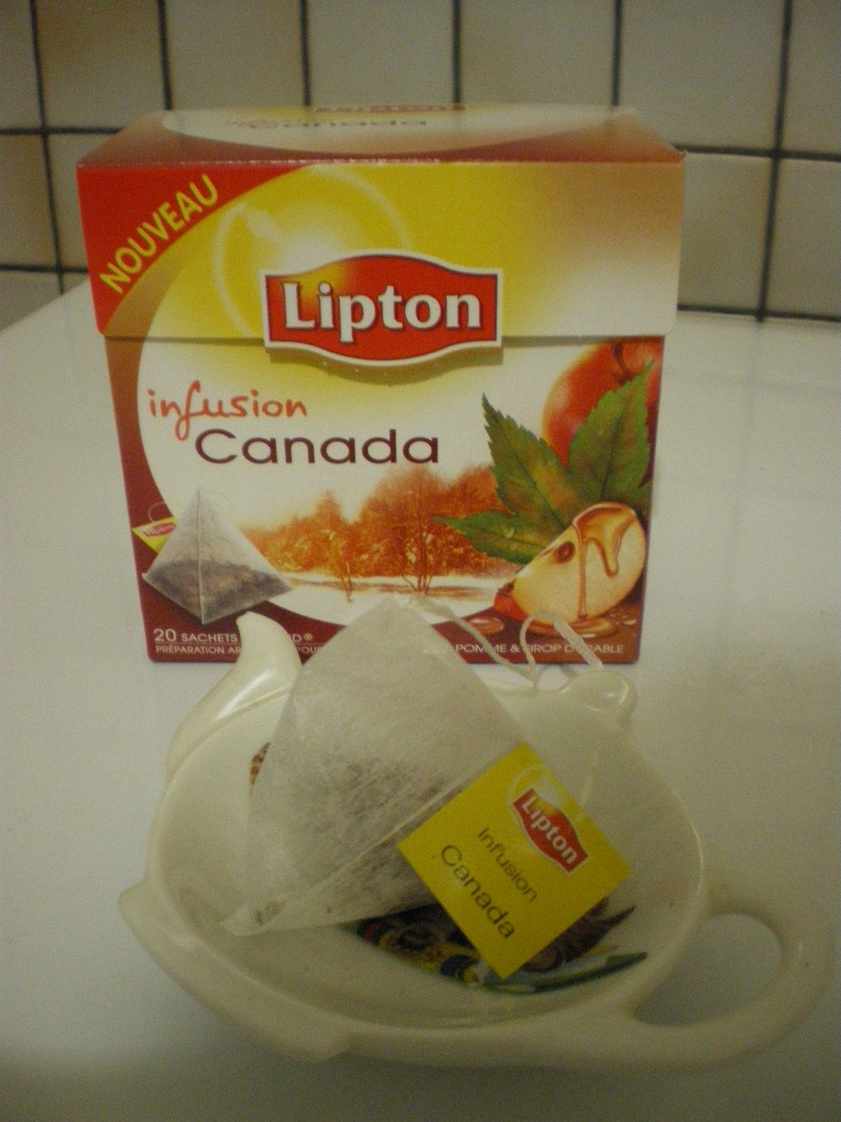 On est d'accord que rien de tel qu'un thé ou infusion en vrac... mais régulièrement je me laisse tenter par les nouveautés des marques de grand magasins, comme cette infusion Canada à la pomme et au sirop d'érable, de chez Lipton.
